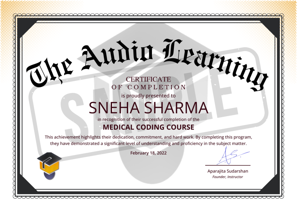 Every course at Theaudiolearning, including the Online Medical Coding Course, is trained by certified and award-winning subject matter experts with more than 15 years of experience in the field, who help the learners in understanding complex topics in a simpler way and the fees is ₹ 9999/-